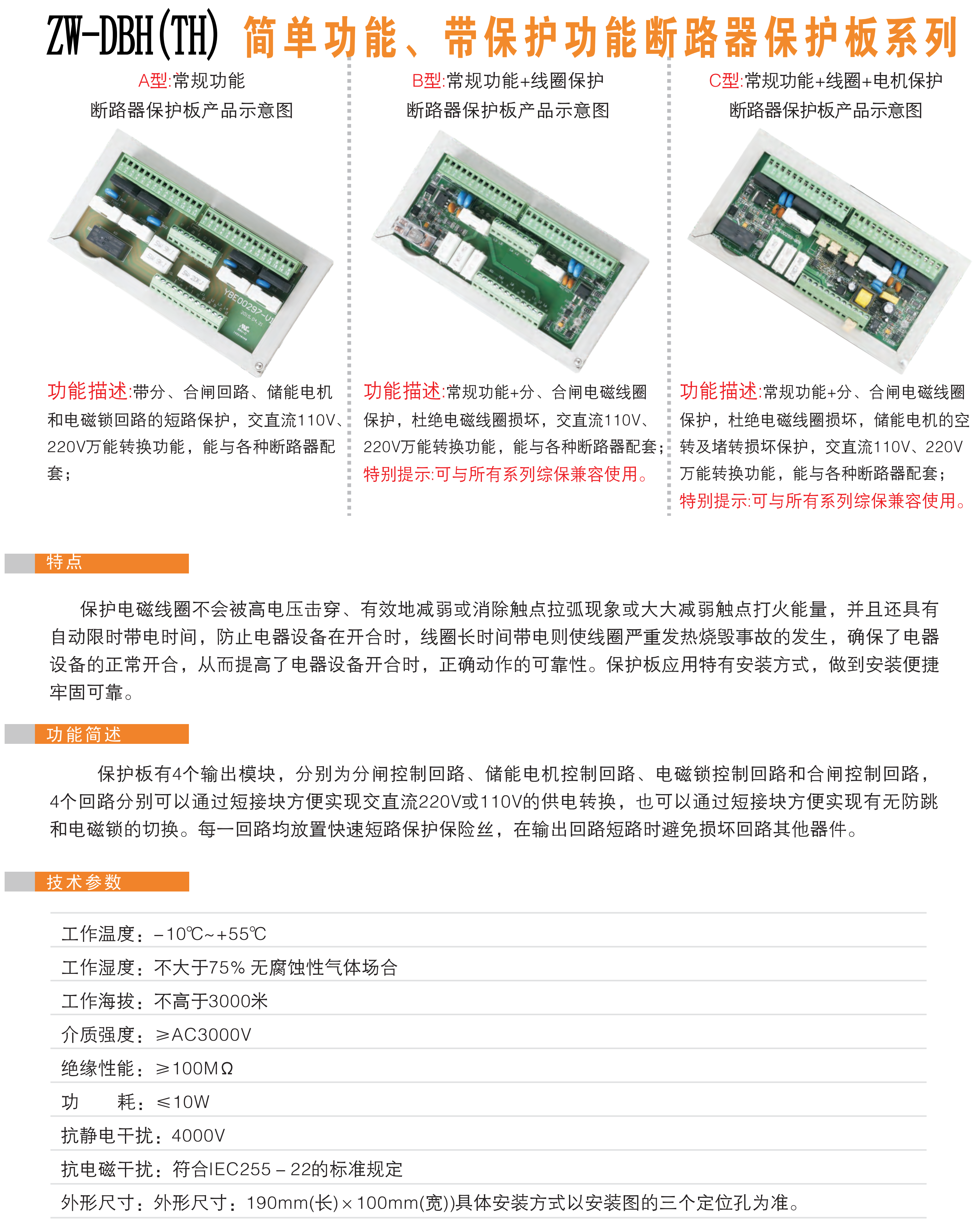 ZW-DBH(TH)斷路器保護(hù)板