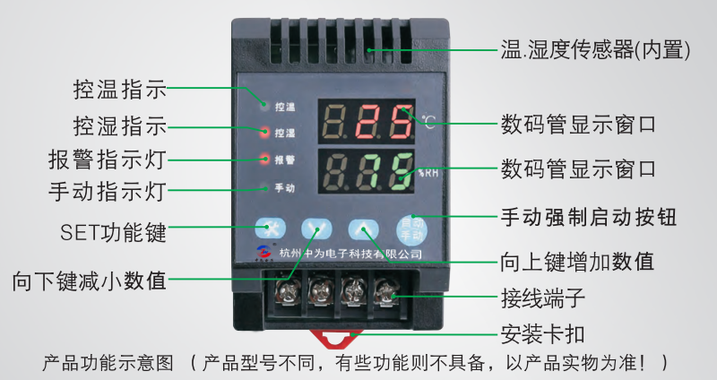 本產(chǎn)品具有測量誤差小、控制精度高、顯示清晰明了、大方得體的優(yōu)點,可廣泛應(yīng)用于各種需要高精度控溫及控濕場合。采用傳感器內(nèi)置,不需要外接傳感器,對同一環(huán)境溫度、濕度進行實時監(jiān)控,數(shù)碼管顯示設(shè)定值和測量值。根據(jù)預(yù)設(shè)控制值,自動或手動強制啟動控制負載為調(diào)節(jié)環(huán)境的溫度和濕度。